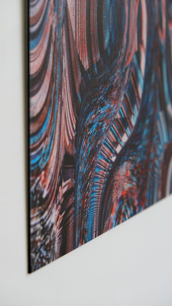 Our prints focus on experimenting with textures that are digitally native—unique to digital creation and not found in nature—, creating a space to observe and appreciate their intricacies in physical form. Each print emphasizes the beauty and innovation of digitally generated pieces, pushing boundaries in traditional notions of art and presenting an alternative approach to artistic expression. This process underscores the value of both digital techniques and the tangible experience of physical art.